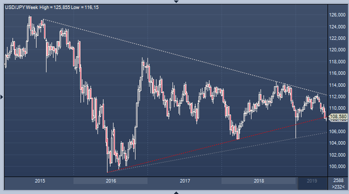 USDJPY удалось стабилизироваться после обвала под конец прошлой недели, но попытки восстановления носят крайне вялый характер, и стратеги TD Bank рекомендуют использовать их для наращивания коротких позиций. В банке обращают внимание смягчение риторики ФРС и падение доходности по американским государственным облигациям на фоне роста пессимизма в отношении мировой экономики. Торговая война США и Китая продолжает набирать, а ситуация с Мексикой хоть и может быть разрешена, но демонстрирует готовность Трампа к войне против всех. В таких условиях от USDJPY сложно ожидать позитивной динамики, и в TD Bank полагают, что снижение пары является путем наименьшего сопротивления. Дополнительным аргументом в пользу снижения являются изменения в технической картине, в частности прорыв ниже поддержки на 108.50. В банке также отмечают, что модели оценки справедливого курса говорят о том, что он находится ниже 107 иен за доллар США.