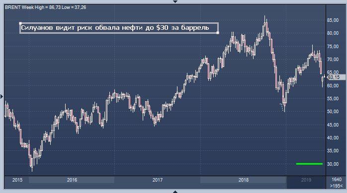 «Мы же не знаем, что будет летом. Как ОПЕК — договорится, не договорится об ограничении добычи. Если не договорится, то цены могут упасть ниже $40 за баррель, и к $30 за баррель.Какой-то период может быть такой вариант, когда цены на нефть будут стремиться именно к этой позиции», — сказал Силуанов на встрече с депутатами в бюджетном комитете Госдумы, обсуждая поправки в бюджет 2019 года.