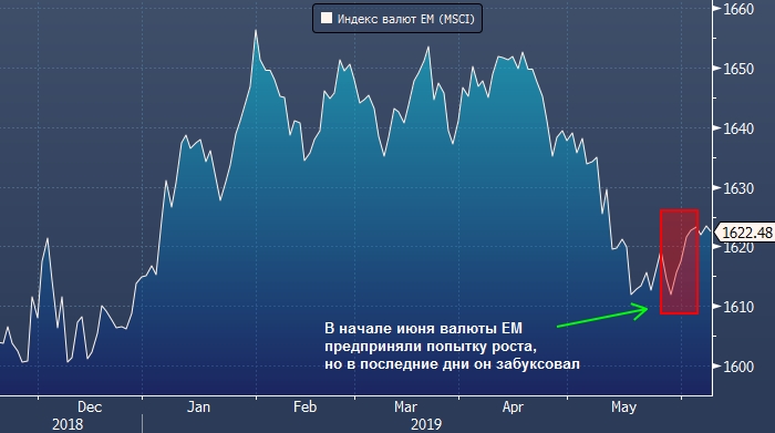 В начале месяца индекс валют EM (MSCI) предпринял попытку роста на фоне общего снижения курса доллара, но в последние дни этот тренд забуксовал.