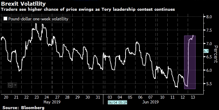 Brexit без сделки рассматривается как наихудший сценарий для рынков, и некоторые аналитики ожидают, что фунт упадет до 1.10 долл. в этом случае. Несколько кандидатов на место лидера Консервативной партии, включая Джонсона, заявили, что будут стремиться вывести Великобританию из блока, если сделки не удастся заключить к текущему конечному сроку 31 октября.