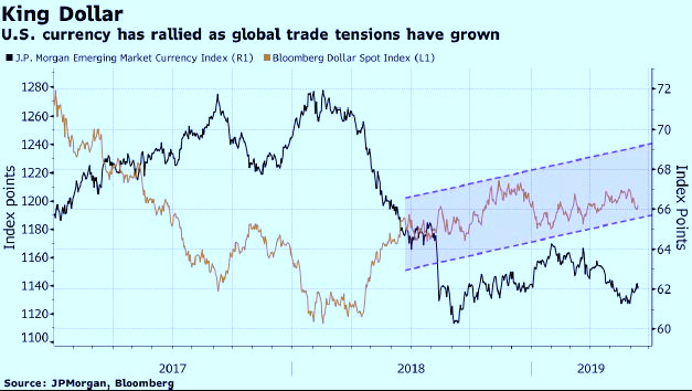 Эскалация торговой напряженности, обусловленная неопределенностью в отношении соглашения в последние месяцы стимулировало укрепление курса доллара и рост спроса на американские облигации. Так, индекс доллара по отношению к 6 основным валютам в конце мая вырос до 5-месячного максимума, а доходность 10-летних казначейских облигаций достигла самого низкого уровня с 2017 года.