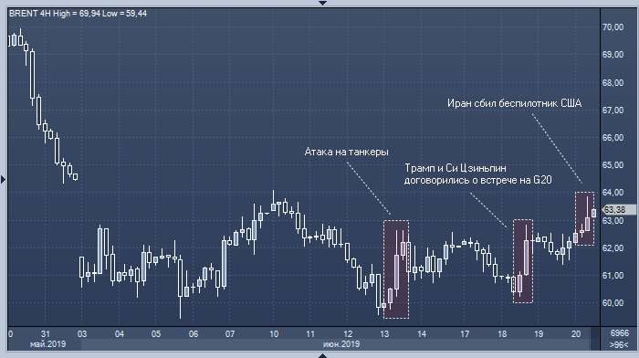 Текущий рост цен на нефть — не первая за последние дни попытка коррекции после майского снижения. Неделю назад котировки взлетали почти на 5% после появления новостей об атаке на два нефтяных танкера неподалеку от Ормузского пролива, в которой США обвинили Иран. Однако рост геополитических рисков пока уравновешивается опасениями замедления мировой экономики из-за затянувшегося торгового конфликта между США и Китаем. Во вторник Дональд Трамп написал в твиттере о том, что встреча между главами обеих стран на саммите Большой двадцатки на следующей неделе все же состоится.