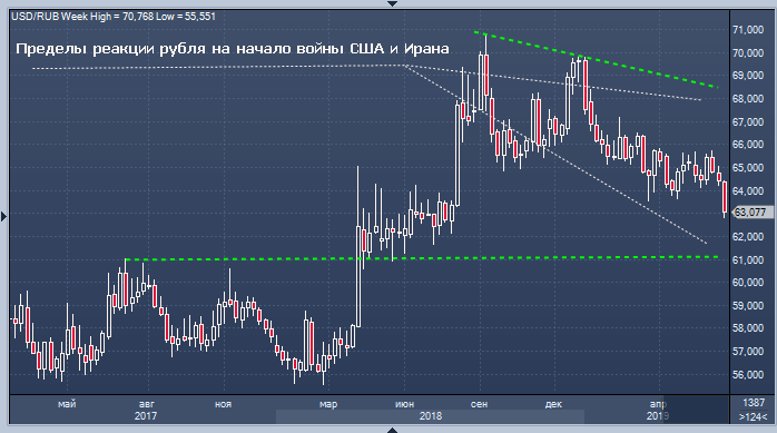 «Вчера слишком низко загнали доллар, сейчас естественное обратное движение и еще с учетом выходных дней, тем более, что рынок может обратить внимание на противостояние США и Ирана. Также есть рискистоп-лоссов по валютным шортам —кто-то же продавал много валюты вчера по низам», — сказал дилер крупного западного банка в интервью Reuters.