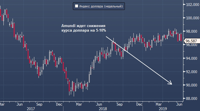 Индекс доллара может снизиться с текущих уровней на 5-10% на фоне падения доходности «трежерис» до среднемировых уровней, пишут эксперты Amundi (ProFinance.ru: $1.6 трлн активов под управлением).