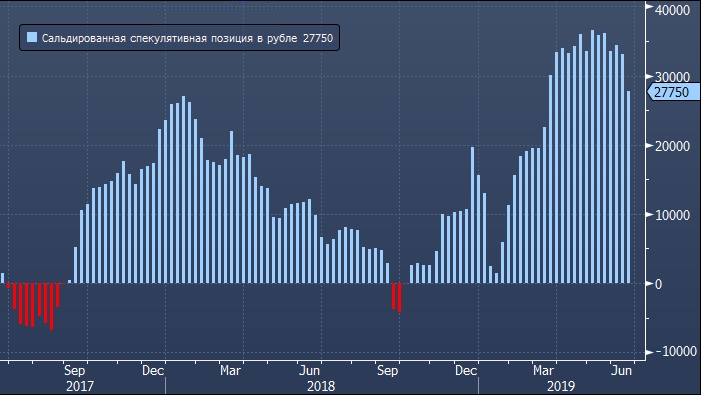 Спекулятивные ставки на рост курса рубля на Чикагской товарной бирже (CME) сократились на 16.35% или 5 424 контракта до 27 750 контрактов, свидетельствуют опубликованные в пятницу данные Комиссии по торговле товарными фьючерсами (CFTC). Отчет отражает изменения за неделю до 18 июня. Соответственно, это было сокращение уже после заседания Банка России, по итогам которого Совет директоров принял решение сократить ключевую ставку до 7.50% годовых.