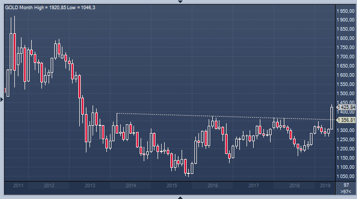 Эксперты, однако, отмечают, что конфликт США и Ирана не является чем-то новым для рынка, и хотя рост напряженности играет роль позитивного фактора, основным драйвером для роста является ослабление позиций доллара на фоне роста ожиданий смягчения политики ФРС. Некоторые же, например аналитики Julius Baer, считают, что ралли последних дней в значительной степени обусловлено техническими факторами: прорыв выше $1360 стал сигналом о формировании основания и спровоцировал ликвидацию насиженных коротких позиций. При сохранении текущих драйверов золото в свете изменений в технической картине может попытаться продолжить движение в направлении $1520, однако для развития активного ралли металлу потребуется еще более слабый доллар и/или переход конфликта США и Ирана в «горячую» фазу.