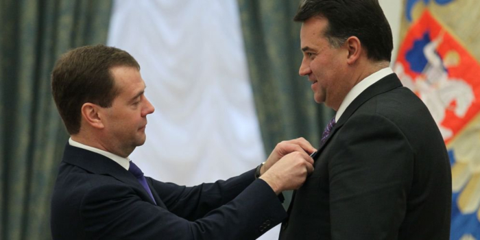 На фото: Дмитрий Медведев награждает Александра Плешакова.