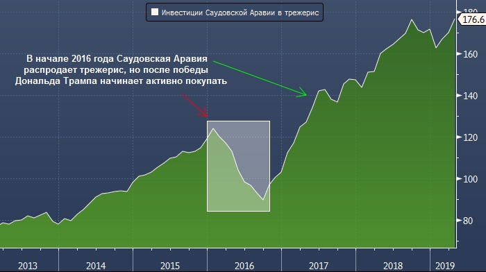 Интересно, что в первые девять месяцев 2016 года Саудовская Аравия сократила вложения в трежерис на 30%, что стало рекордным значением за предыдущее десятилетие. Тогда страна столкнулась с серьезным фискальным кризисом, поэтому распродажу госдолга США можно легко объяснить исключительно финансовыми потребностями саудитов. Однако эти новости породили тогда немало спекуляций относительно и политических мотивов произошедшего.