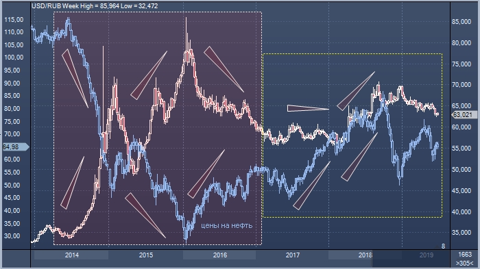 Согласно бюджетному правилу, правительство продает энергоносители на экспорт и получает доход, если цены на нефть Brent выше $40 за баррель, доходы выше тех, что заложены в бюджет. Превышающая $40 за баррель разница идет в фонд. Эти деньги Россия сможет использовать для пополнения бюджета, когда, например, нефть упадет ниже $40 за баррель. Стоит отметить, что с момента введения бюджетного правила мировые цены ни разу не опускались ниже этой пороговой отметки. При этом с тех пор как было введено правило рубль не смог реализовать рост, сопоставимый тому, как это было в 2016 году на фоне удорожания черного золота на мировом рынке.
