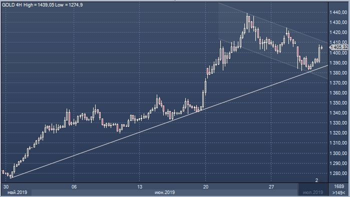 Цены на золото активно восстанавливают потери после самого большого за последний год внутридневного падения на фоне появления дополнительных беспокойств в отношении здоровья мировой экономики. Котировки спот-рынка вновь поднялись выше психологического уровня $1400 за тройскую унцию. Во вторник рост составляет 1.47% до $1404.5 за унцию. Драгоценный металл с начала года подорожал на 9.52%.