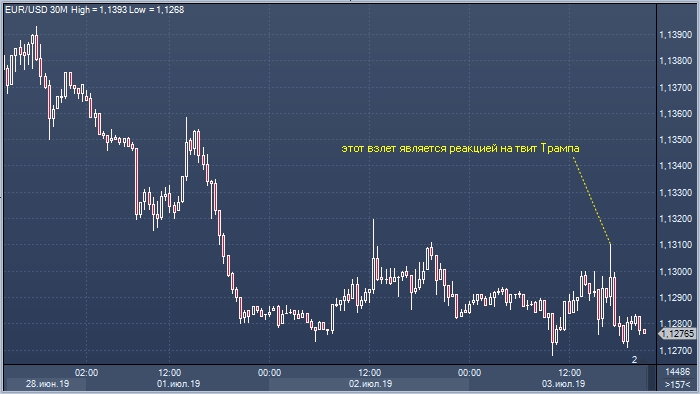 Поводом для этого всплеска стало сообщение в твиттере президента США. Дональд Трамп обвинил Китай и Европу в манипуляциях с валютой. Он посетовал на то, что США остаются молчаливым наблюдателем, который бездействует и беспечно наблюдает за тем, как конкуренты ведут свою игру. И это продолжается годами.