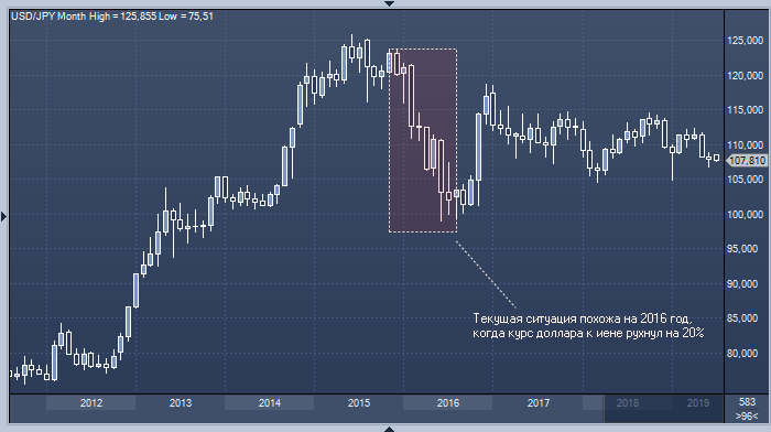 По их мнению, текущая ситуация похожа на 2016 год, когда инфляционные ожидания снижались быстрее номинальной доходности облигаций. Тогда доллар/иена рухнул на 20%.