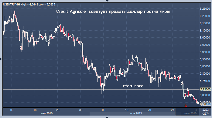Рекомендация — это «очень краткосрочная торговля» с целью - 5.42 - извлечь выгоду из облегчения, последовавшего за повторными выборами в Стамбуле, где снова победила оппозиция, из снижения основных ставок и привлекательногокэрри-трейда. Возможные санкции США представляют собой риск, но эксперт ожидают, что эффект любых санкции будут минимальным. Он советует установить жесткийстоп-лосс на уровне 5.69 в предложенной сделке с учетом указанных рисков.