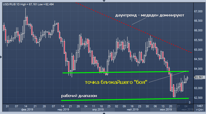 Рынок пока не знает, как на это реагировать: рубль качает без направления в обе стороны, и ставка тут вряд ли играет роль. Она будет в игре в случае, если иностранцы поверят в дальнейший рост цен на ОФЗ и принесут еще немного денег на российский рынок долга. Но надо понимать, что рост их доли на рынке ОФЗ с 25% до 30% вызван не столько связанными с Россией факторами, сколько обвалом доходности трежерис. А ФРС, как нам кажется, разочарует, рынки в июле. Она может вообще не снизить ставки. А рынки то «просят» полпроцента. В общем с тенденцией на рынке госдолга пока неясно. Также неясно, как предстоящее в июле снижение ставки ЦБР будет влиять на рубль. В первой половине года смягчение монетарной политики в России, по признанию аналитиков, служило фактором поддержки для рубля.