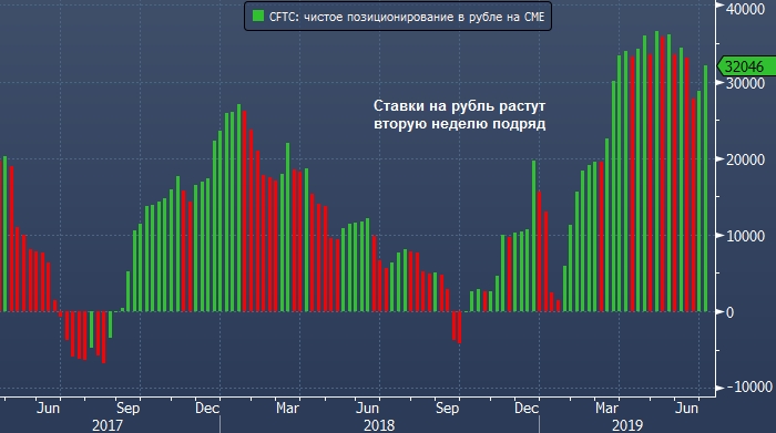 При этом крупные спекулянты, такие как хедж-фонды, нарастили объем чистых коротких позиций в рубле до рекордных значений с 2009 года, а позиционирование управляющих активами оказалось абсолютно зеркальным: их чистые ставки на рубль достигли наиболее бычьих значений также с 2009 года.