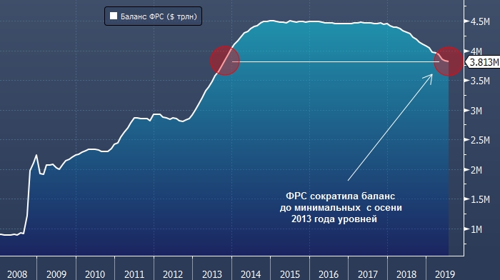 Таким образом, несмотря на все разговоры о «голубином развороте» и снижении ставок, ФРС пока упрямо продолжает сокращать свой баланс и ужесточать монетарную политику.