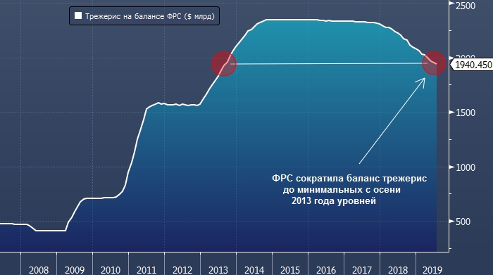С конца 2017 года, т. е. с момента запуска «нормализации», ФРС избавилась от активов на сумму $648 млрд, а с января 2015 года, когда ее баланс достиг рекордных значений, — от активов на сумму $687 млрд.