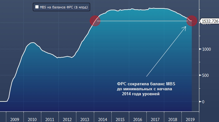 Примерно 95% MBS на балансе ФРС имеют срок погашения порядка 10 лет, поэтому сокращение объема этих инструментов на балансе регулятора почти полностью обусловлено регулярными выплатами по ним. Т.е. ФРС их также не продает.