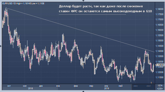 «Несмотря на то, что наши экономисты ожидают снижение ставки на 50 б.п. в США на 2019 год, это не меняет мой краткосрочный взгляд на умеренный рост доллара США в рамкахG-10». «Доллар США останется самым высокодоходным среди аналогов по G-10, и это должно оказать ему поддержку в мире с низким уровнем волатильности и отдачи от кэрри-трейда».