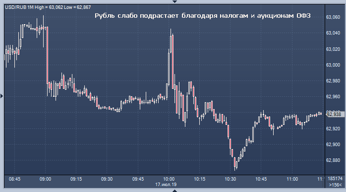 "Слушания с участием спецпрокурора Мюллера в Конгрессе США были перенесены на 24 июля, что снимает геополитические риски для рубля с повестки текущей недели. Ключевым фактором поддержки для российской валюты, как и для прочих рисковых активов, на данный момент выступают сигналы от ФРС о готовности снизить ставку на июльском заседании. На этом фоне актуальным для рубля остаётся диапазон 62.5-63.5 в паре с долларом", - написали аналитики Нордеа Банка.
