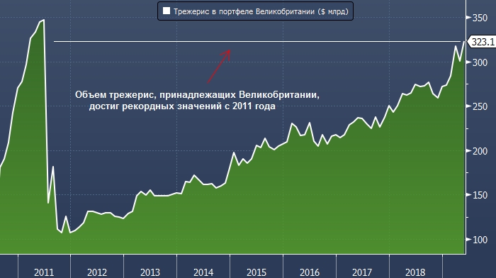 Великобритания, которая в последние годы активно покупает трежерис (для себя или от своего лица, но для других), в мае вновь увеличила баланс этих бумаг, доведя его до $323.1 млрд (+$22.3 млрд), что является рекордным значением с 2011 года.