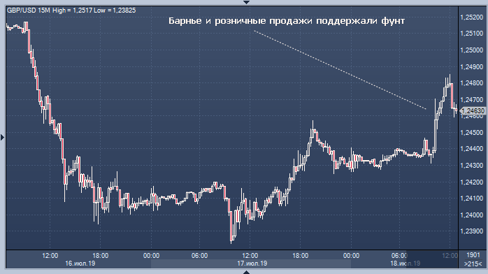 Фунт вырос после того, как комментарии главного представителя Европейского союза на переговорах возродили надежды на то, что может быть найден компромисс по ирландской границе, что стало серьезным прорывом для выхода из тупика Brexit. Стерлинг растет второй день после того, как Мишель Барнье сказал, что он был открыт для альтернативного плана в отношении границы. Валюта продолжила рост после того, как розничные продажи в Великобритании за июнь оказались лучше, чем прогнозировалось.