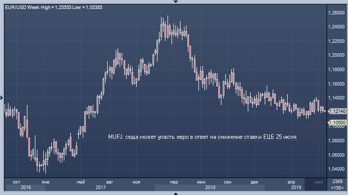 В MUFG ожидают, что EURUSD в ближайшее время будет торговаться в диапазоне от 1.1350 до 1.1050 при рисках смещенных в пользу движения к его нижней границы. В то же время в банке предупреждают, что снижение пары в ответ на снижение ставок ЕЦБ рискует оказаться скоротечным и ограниченным, отчасти в виду приближения даты заседания ФРС, которое состоится 31 июля.