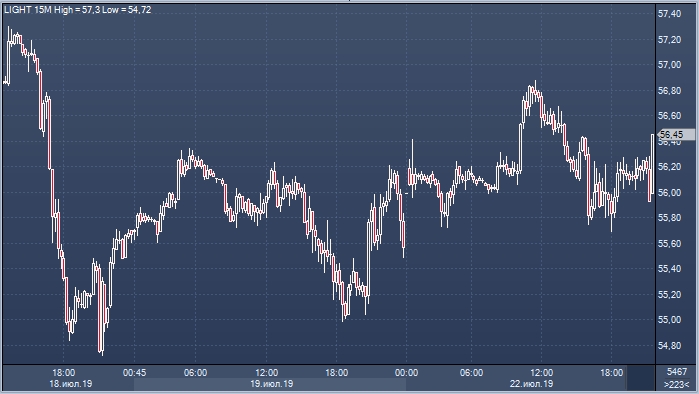 Котировки на рынке нефти растут на американских торгах в понедельник 22 июля. Brent дорожает на 1.23% до $63.23 за баррель, при этом WTI растет на 1.06% до $56.22 за баррель.