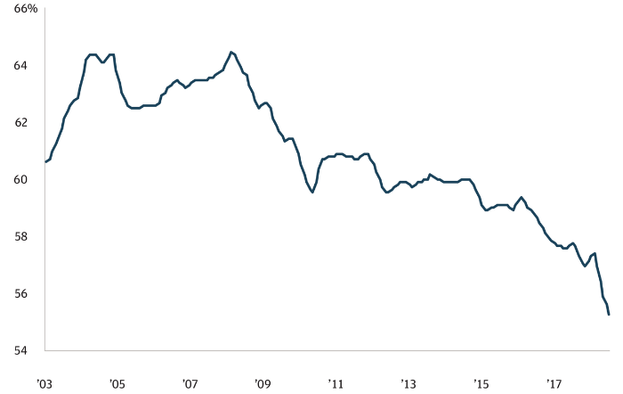 Последние данные о структуре валютных резервов мировых центробанков говорят о том, что этот процесс, возможно, уже идет. С 2008 года доля доллара в этих резервах неумолимо снижается (см. график ниже), и впервые с 1999 года, когда появилась единая валюта, мировые ЦБ одновременно продают доллар и покупают евро.