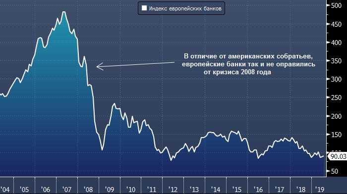 Если же ЕЦБ продолжит смягчать ДКП и снизит ставки, например, на 1.00%, то деятельность 25% европейских банков станет убыточной или как минимум бесприбыльной, а 75% из них не смогут покрыть стоимость капитала.