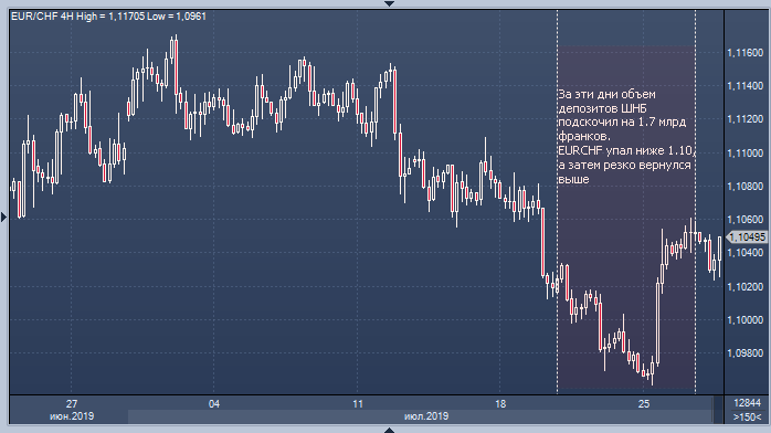 Стоит отметить, что последние данные ШНБ подтверждают мнение стратегов BoA, которое они выразили еще до их публикации. Объем средств, которые коммерческие банки размещают на депозиты ШНБ, продемонстрировал максимальный рост за последние два года: за неделю, закончившуюся 26 июля, он выросли на 1.7 млрд франков до 581.2 млрд.