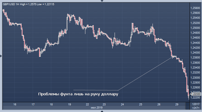 Министр иностранных дел Великобритании Доминик Рааб не проявил обеспокоенностипо-поводу срочной прямой встречи с коллегами из ЕС на высшем уровне, отражая сдержанность нового правительства по поводу взаимодействия с ЕС, так как Великобритания угрожает выйти из блока без сделки, согласно Шону Осборн в Скотиабанке. Комментарии Рааба и премьер-министра Борисв Джонсонв «вряд ли обнадеживают инвесторов», так как фунт сломал долгосрочную поддержку на минимуме 1.24 на прошлой неделе, а последняя реальная поддержка — минимум 2016 года — 1.1840, сказал Осборн.