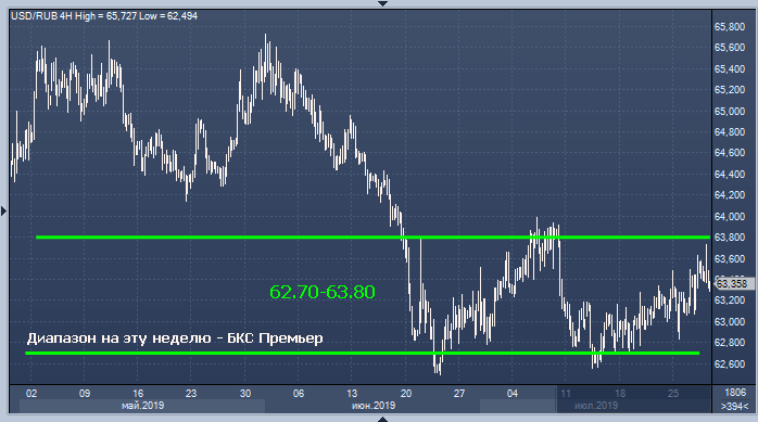 Рубль в реакции на решение ФРС может временно сходить в область 62.8–63.1, полагает аналитик, но диапазон недели он ограничивает рамками 62.7–63.8 за доллар.