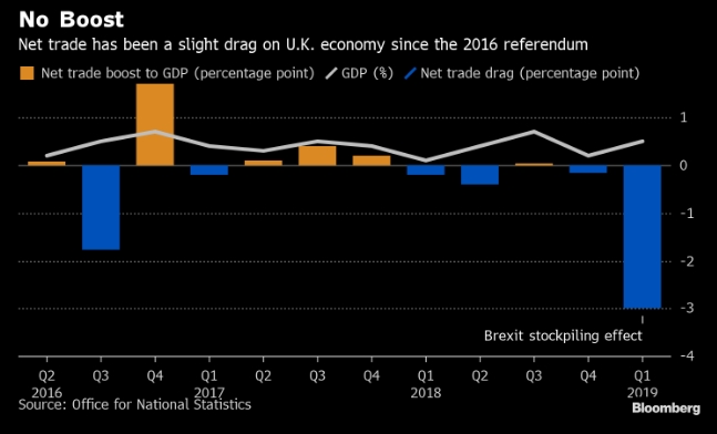 Последнее сильное снижение стоимости фунта стерлингов вряд ли станеткаким-либо серьезным подспорьем для британских экспортеров, если руководствоваться недавней историей. Падение стерлинга после референдума о членстве в Европейском союзе 23 июня 2016 года, которое совпало по времени с периодом сильного роста мировой экономики, не привел к росту экономики Великобритании в результате улучшения показателя чистого экспорта. Теперь, в условиях замедления мировой экономики, будет еще труднее воспользоваться преимуществами более слабой валюты.