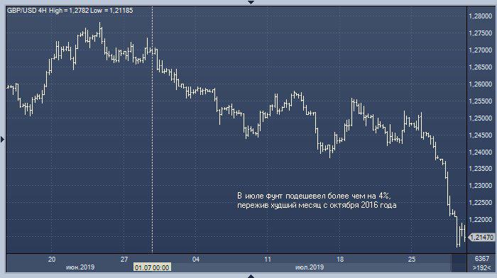 По ее словам, инвесторы проявляют все большее беспокойство по поводу жесткой позиции правительства Бориса Джонсона в отношении переговоров с Брюсселем, особенно после слов нового премьера о готовности выйти из состава ЕС к концу октября «со сделкой или без нее».
