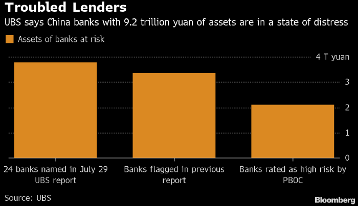 Банковскому сектору Китая необходим капитал, много капитала, пишет аналитик UBS Джейсон Бедфорд, который читает каждую строчку каждого финансового отчета 250 китайских банков. Звезда сорокалетнего эксперта взошла, когда он смог точно предсказать появление проблем у небольших банков страны, и теперь он указывает на дыру в 2.4 трлн юаней ($349 млрд), образовавшуюся в капитале китайских банков. Совокупный объем проблемных активов в банковской сфере Поднебесной господин Бедфорд оценивает в 9.2 трлн юаней ($1.34 трлн), что составляет 4% всех ее активов и почти 10% ВВП страны (см. график в начале статьи).