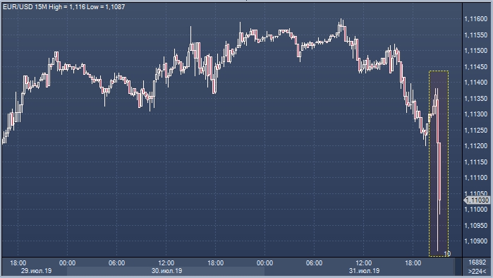 Комитет по операциям на открытом рынке (FOMC) по итогам двухдневного заседания, завершившегося в среду, 31 июля, принял решение снизить верхнюю и нижнюю границу диапазона ставки по федеральным фондам на 25 базисных пунктов до 2.00–2.25% годовых. Решение не было единогласным: Эстер Джордж и Эрик Розенгрен проголосовали за то, чтобы сохранить ставку без изменений.
