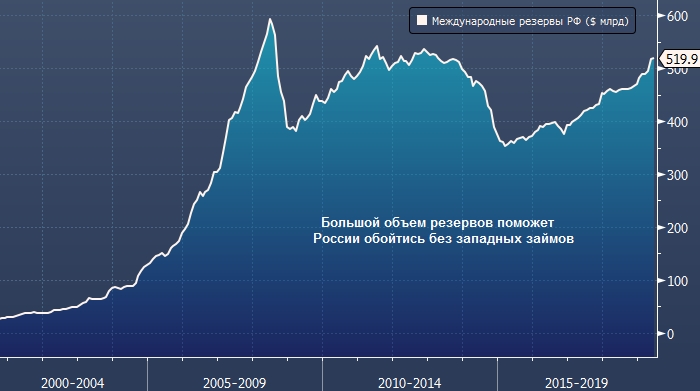 Отметим, что новые санкции ограничат способность РФ занимать средства у американских банков, Международного валютного фонда (МВФ), Всемирного банка и Европейского банка реконструкции и развития (ЕБРР). Однако международные резервы Российской Федерации недавно превысили $500 млрд и вернулись к значениям 2013-2014 годов, что должно помочь стране обойтись без западных займов.