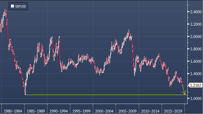 Консенсус-прогноз банковских аналитиков подразумевает, что жёсткий Brexit приведет к падению курса фунта с текущих уровней на 9–10%. Это приблизительно 1.10 доллара за фунт. Такого курса не наблюдалось последние 34 года.
