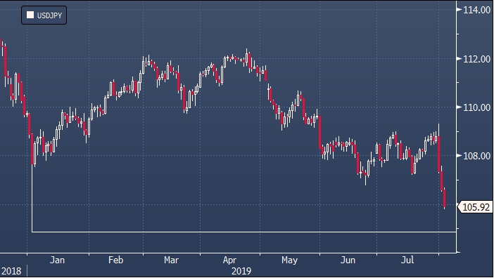 Разочарование инвесторов решением ФРС на прошлой неделе, а также обострение напряженности в торговых переговорах США и Китая привело к падению рынков акций и повысило спрос на безопасные активы, что стимулирует укрепление японской валюты.