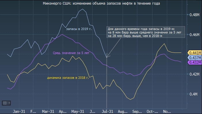 На прошлой неделе Минэнерго опубликовало статистику по состоянию на 26 июля. Запасы сырой нефти резко сократились на 8.5 млн баррелей, а запасы бензина упали на 1.8 млн баррелей.