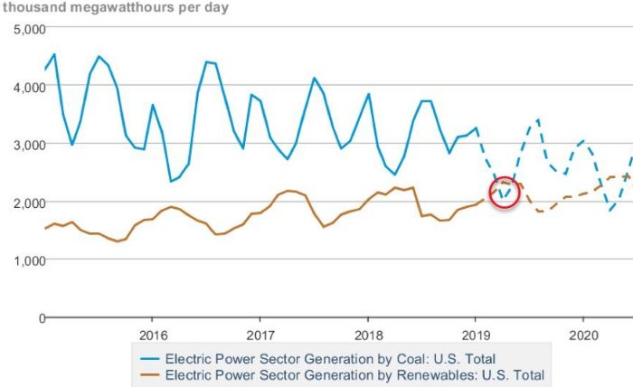 На данный момент доля возобновляемых источников в электроэнергетике США составляет 18%, угля — 28%, а природного газа — 34%. По прогнозу Минэнерго США, к 2050 году доля возобновляемых источников вырастет до 31%, а доля угля снизится до 17%. В мире на уголь приходится примерно треть генерации всей электроэнергии. В США 90% угля используется для нужд энергетики, а остальные 10% - для производства стали и цемента.