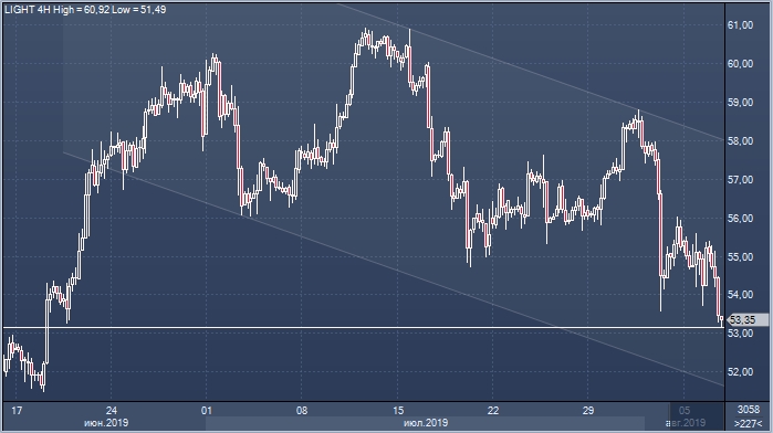 Котировки WTI без энтузиазма восприняли отчет Американского института нефти. Цены падают 2.52% до $53.31 за баррель - наихудшего значения за полтора месяца