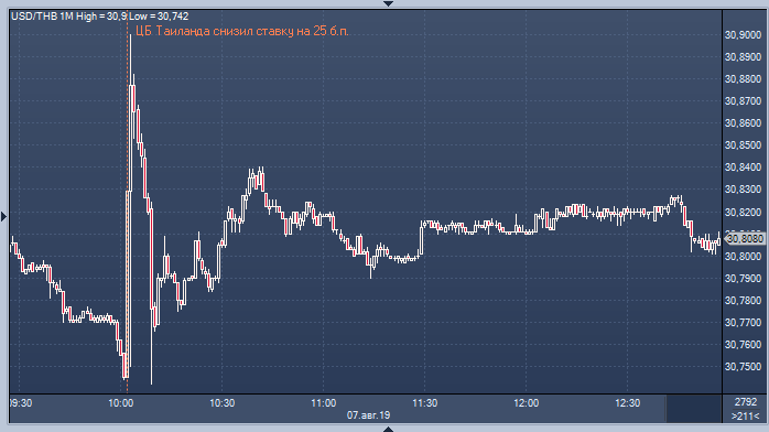 Банк Таиланда также не остался в стороне — регулятор снизил ставку с 1.75% до 1.50%, при этом это решение стало полной неожиданностью для инвесторов, которые ожидали её сохранения на прежнем уровне. USDTHB отреагировал рывком выше, однако пока быкам не удалось вырваться из диапазона последних недель.