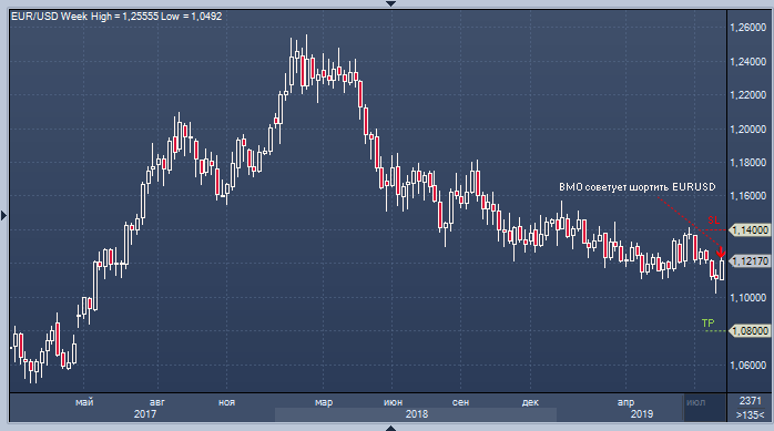 Стратеги Bank of Montreal (BMO) отмечают, что отрицательные ставки ЕЦБ сделали евро валютой фондирования, и сокращение позиций кэрри трейдеров в условиях эскалации конфликта США и Китая обеспечило импульс росту курса. Однако в банке обращают внимание на то, что дела в Еврозоне, в том числе и в Германии, в последнее время шли не очень хорошо, а ухудшение перспектив экономики Китая сулит Европе большие неприятности. В BMO полагают, что ЕЦБ придётся погрузить ставки еще глубже в зону отрицательных значений, а новый тяжёлый период в экономике грозит обострением политической напряженности внутри блока, который к тому же рискует испытать на себе последствия жёсткого Брекзита.