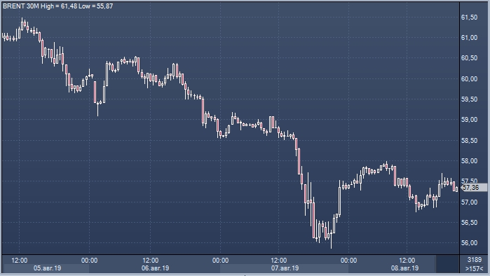 Фьючерсы на Brent в ходе американской торговой сессии в четверг прибавляют 2% до 57.35 за баррель. Американский бенчмарк WTI растет на 2.27% до 52.26 за баррель.