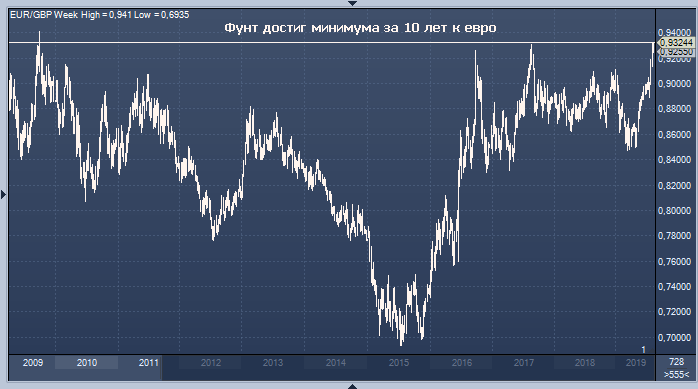 Фунт упал до 10-летнего минимума по отношению к евро рано утром в понедельник, так как трейдеры в Азии отреагировали на отчет, в котором говорится, что парламентарии могут оказаться неспособны предотвратить Brexit без сделки, или так называемый жесткий вариант развода. По данным Bloomberg, стерлинг достиг внутридневного минимума в 1.0724 фунта за евро сразу после полуночи.