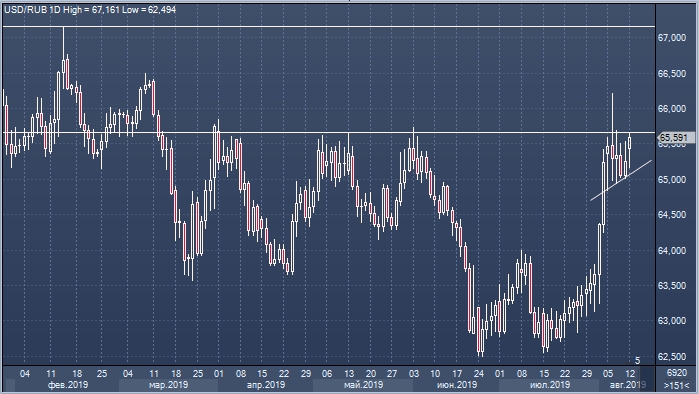 в среду, 14 августа, будут опубликованы предварительные данные по ВВП еврозоны во 2 квартале 2019 года. Как ожидается показатель вырастет на 0.2% к предыдущей квартальной четверти и на 1.1% к аналогичному кварталу прошлого года. Слабая статистика может оказать давление на аппетит инвесторов в отношении рисковых активов, что негативно скажется на рубле.