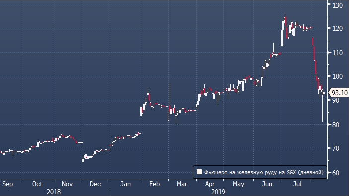 Ухудшение перспектив мировой экономики на фоне эскалации торговой войны и ослабление курса юаней крайне негативно отразились на динамике цен на железную руду: фьючерс на SGX теперь держится на 22% ниже уровня закрытия 31 июля, при этом в определенный момент масштабы потерь превышали 30%.