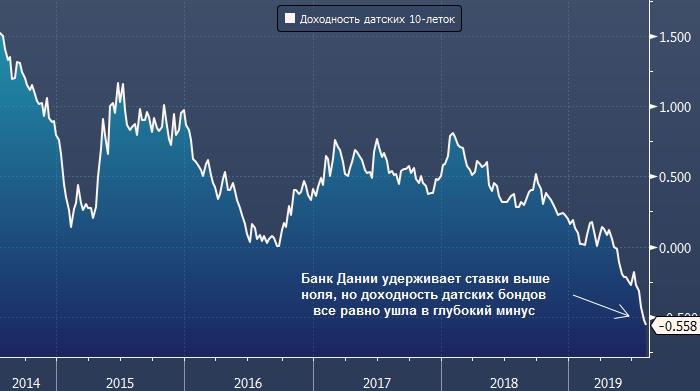 Напомним, что в настоящий момент уже $15 трлн долговых инструментов в мире торгуются с отрицательной доходностью.